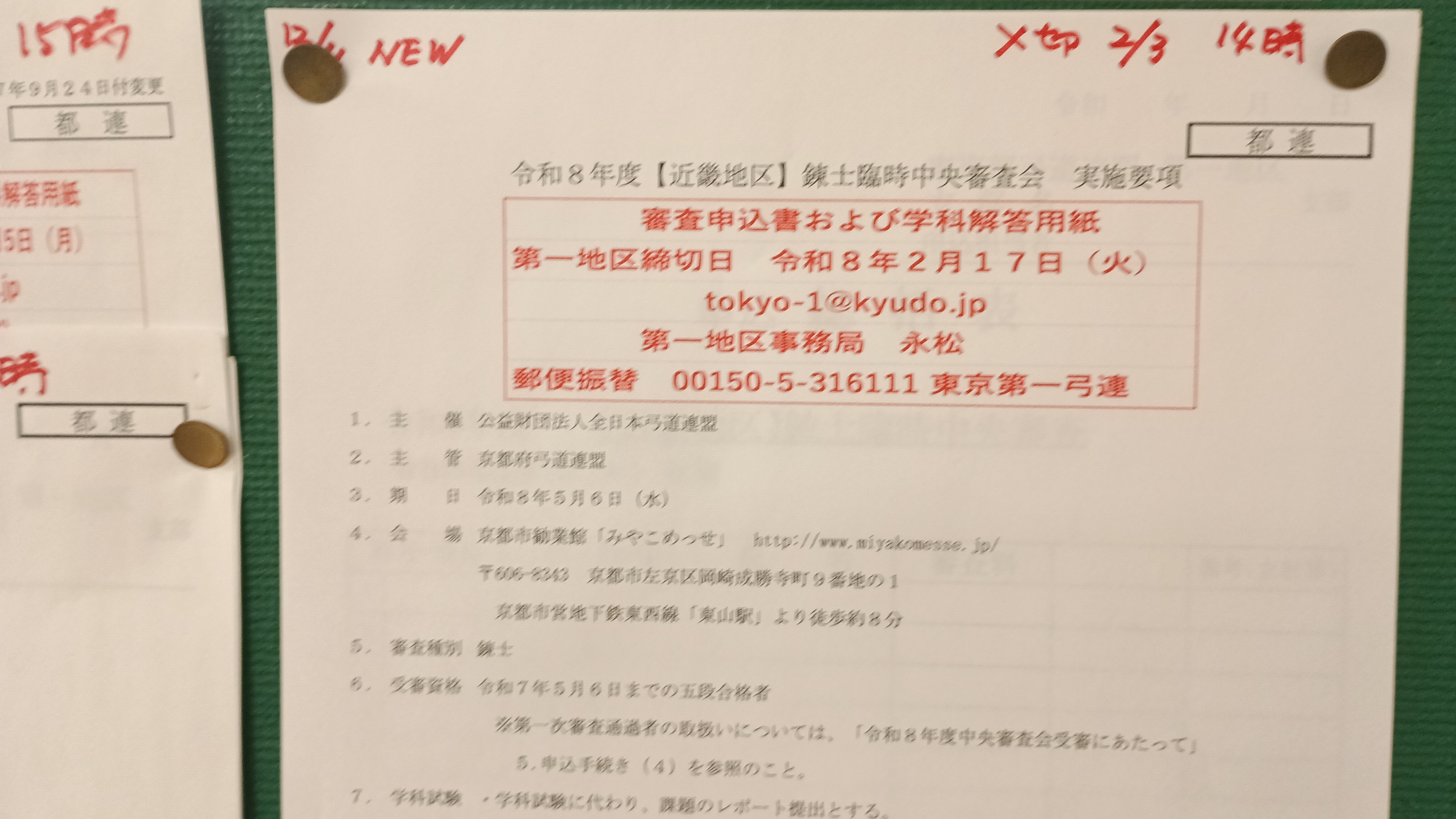 令和8年5月4日から京都にて行われる 定期中央審査の実施要項を掲示しました。 足立支部締切りは2月3日14時です。 詳しくは道場掲示をご確認ください…