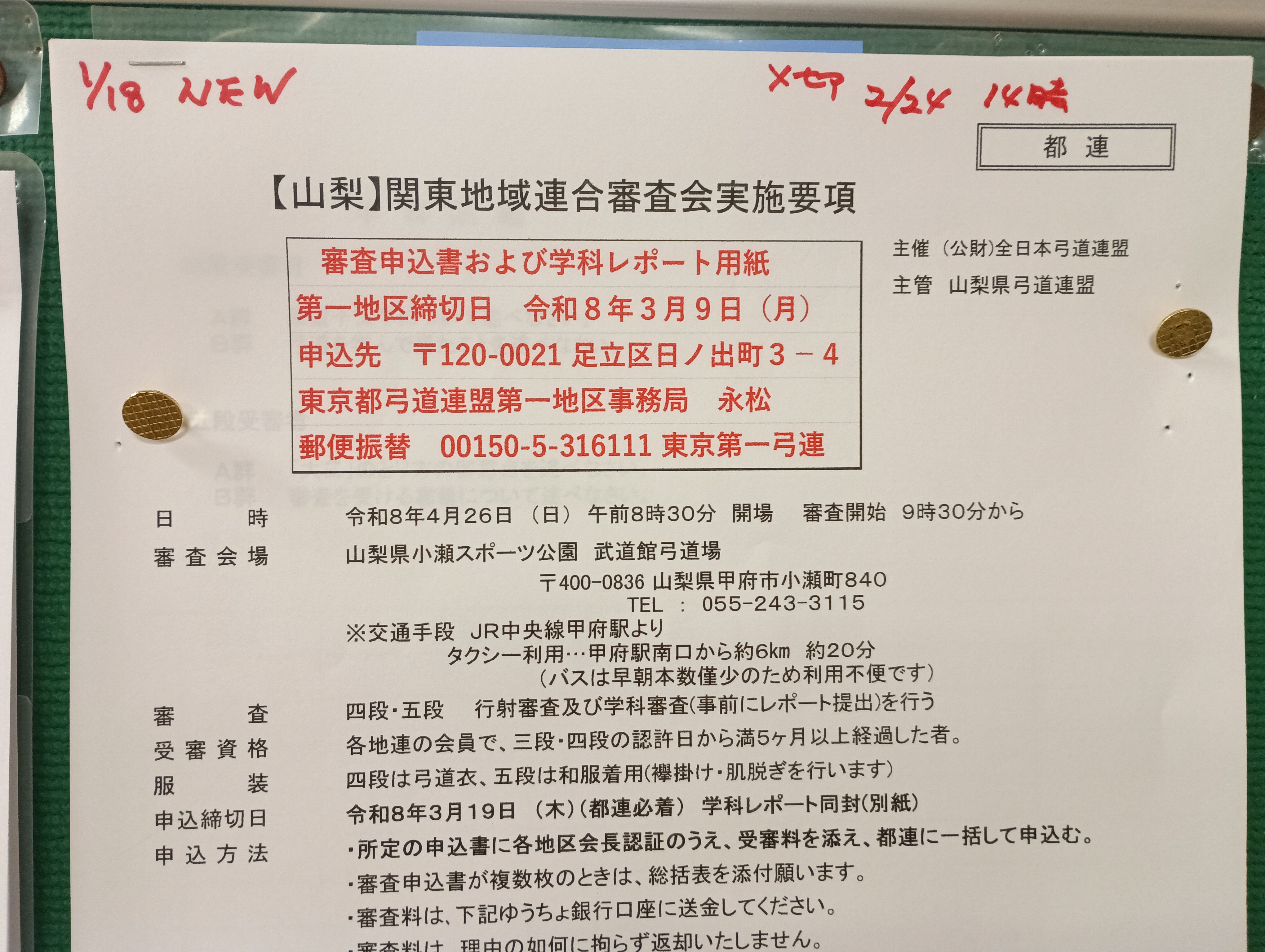 2026国スポ東京都代表選手選考会の要項を 掲示しました。 足立支部締め切りは 2月21日です。 詳しくは道場掲示をご確認ください。  …