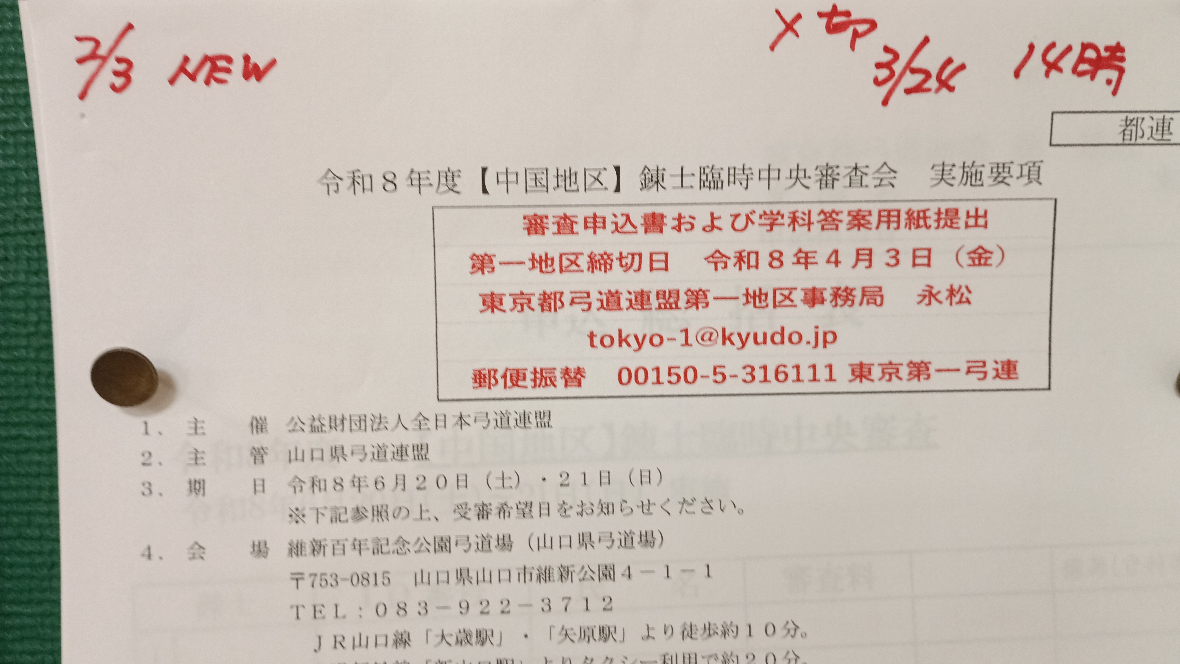 3/22 東京都弓道指導者講習会要項