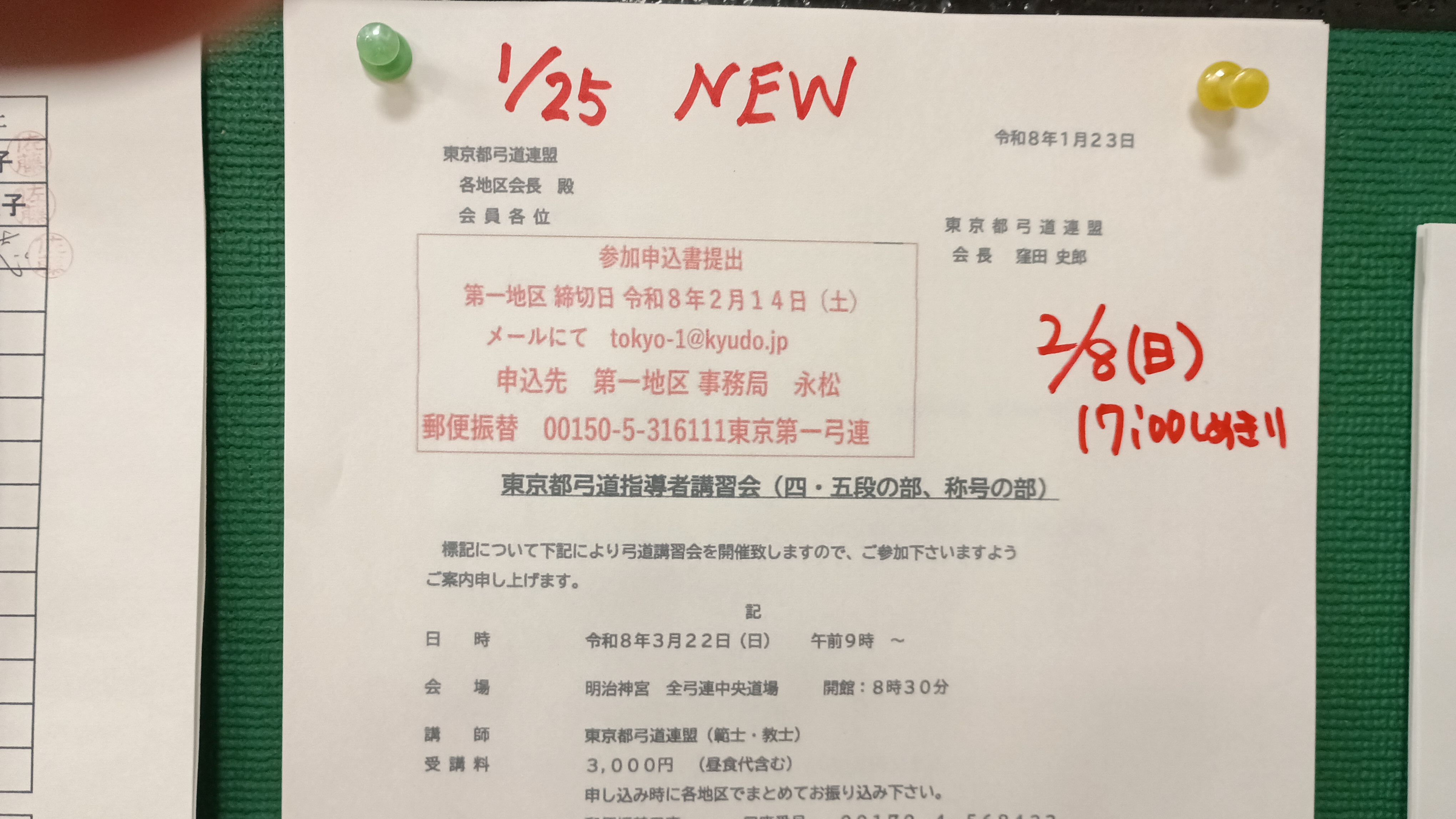 3/22 東京都弓道指導者講習会要項